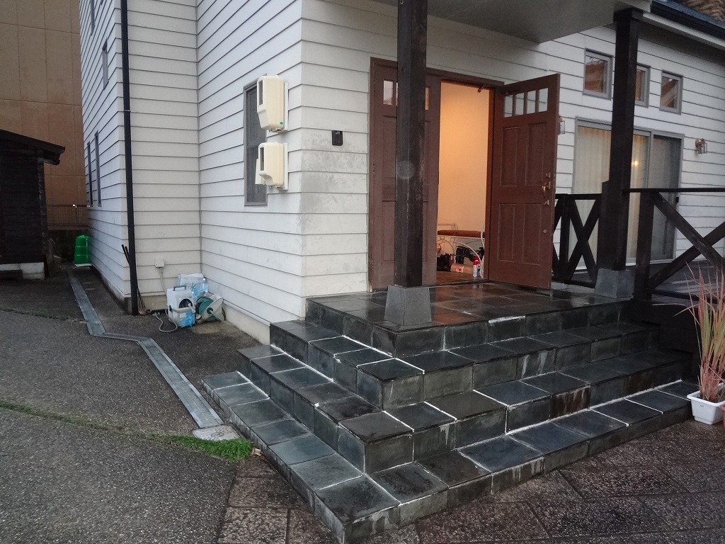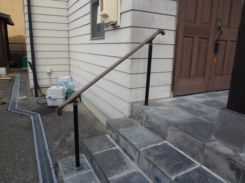 お客様より玄関の階段に手摺をつけてほしいとのご要望があり、